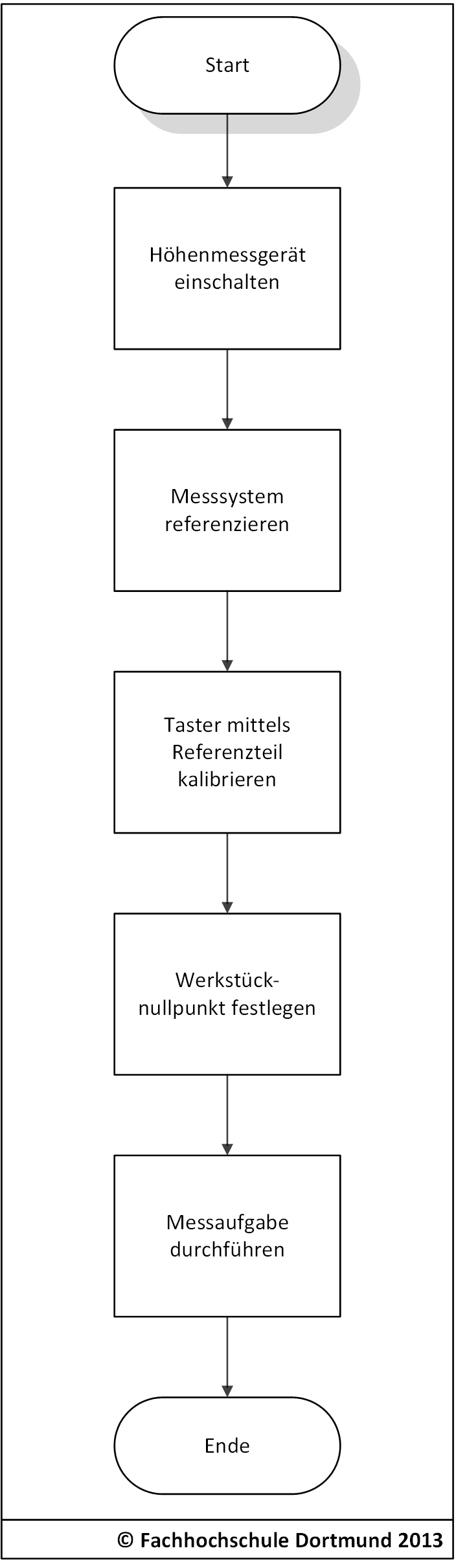 Die Inbetriebnahme des Höhenmessgerätes „TESA micro-hite plus M 600“ und die Durchführung einer Messaufgabe sind im folgenden Flussbild dargestellt. Eine detaillierte Anleitung zur Bedienung finden Sie in Anlage 1 und Anlage 2 dieser Arbeitsanweisung.